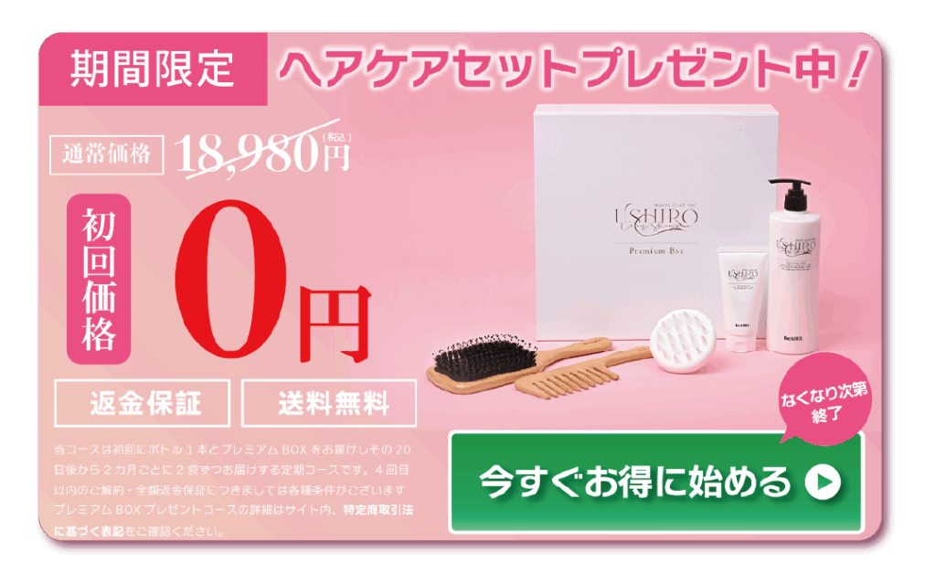 この破格の泥パックシャンプー USHIRO 初回0円キャンペーンは、非正規ルートでは絶対に手に入らない、